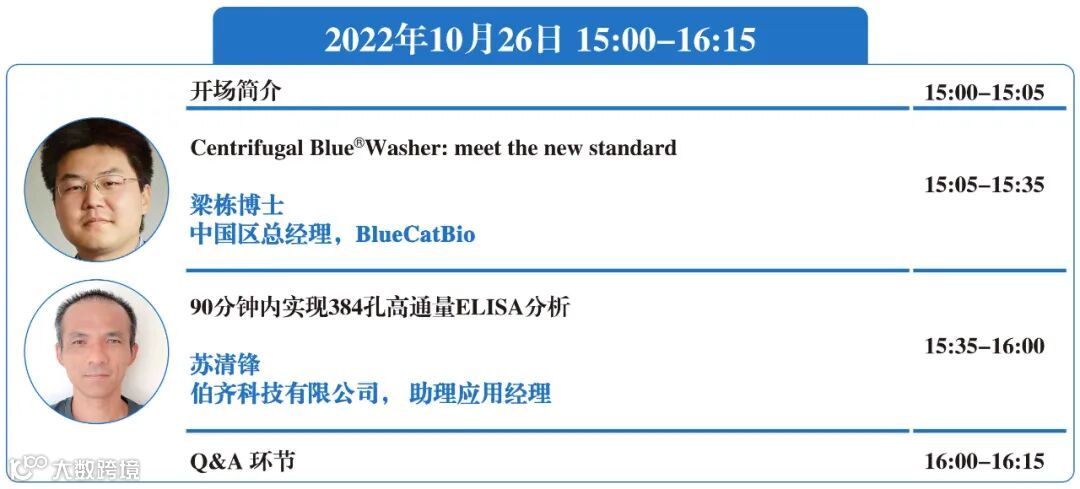 本次讲座邀请BlueCatBio中国区总经理梁栋博士和伯齐科技助理应用经理苏清锋,为您分享BlueWasher和BMG多功能酶标仪在高通量药物筛选领域的优势,欢迎感兴趣的老师报名参加,共同交流分享!