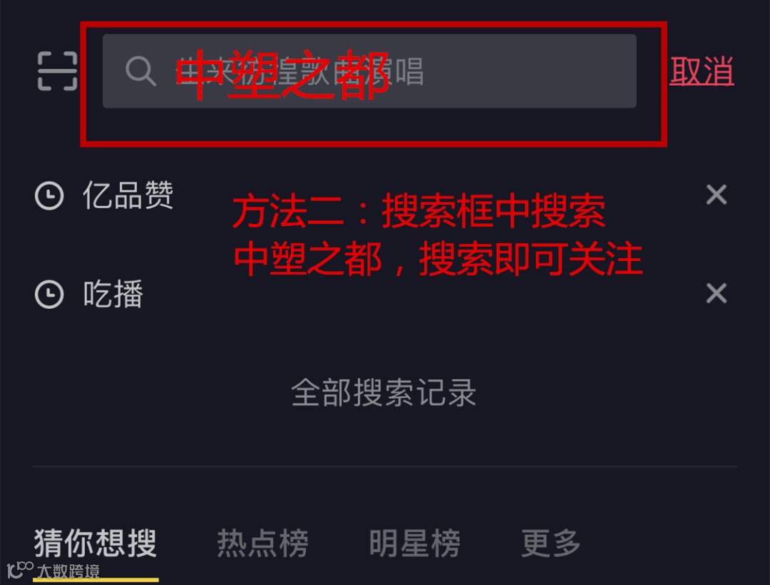 2/直接在搜索栏 搜索 “中塑之都” ,进入【中塑之都】关注页面。