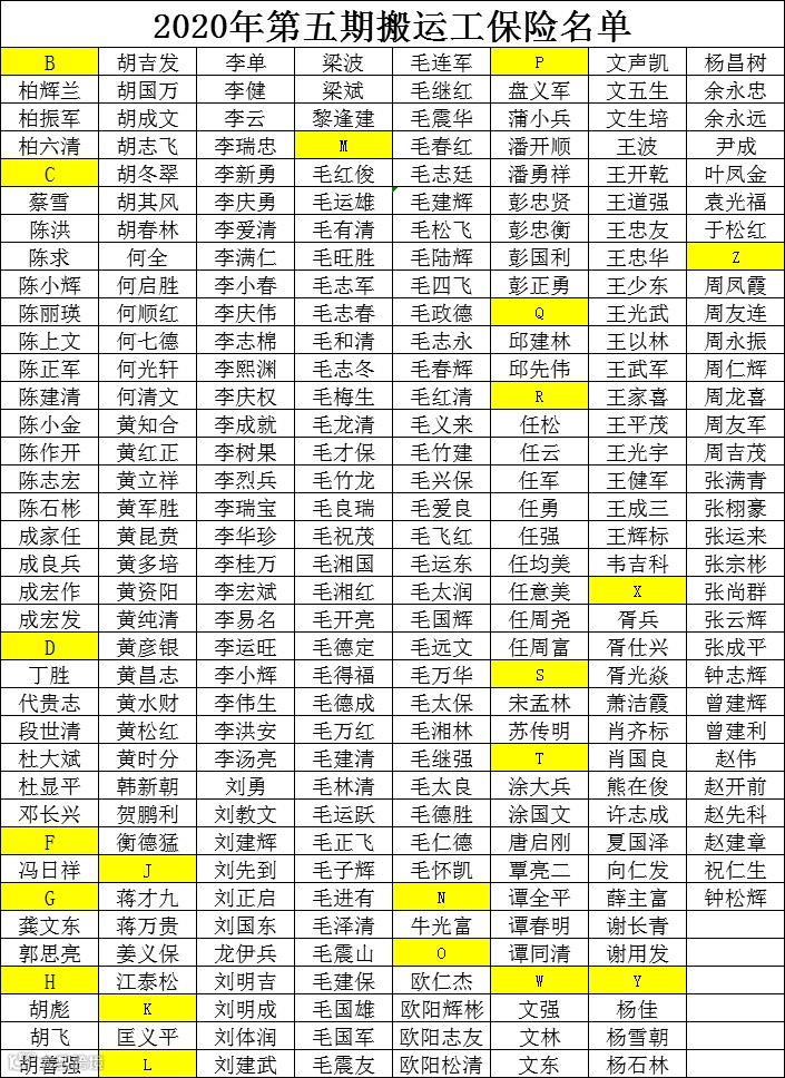 第五期搬运工投保名单如下: