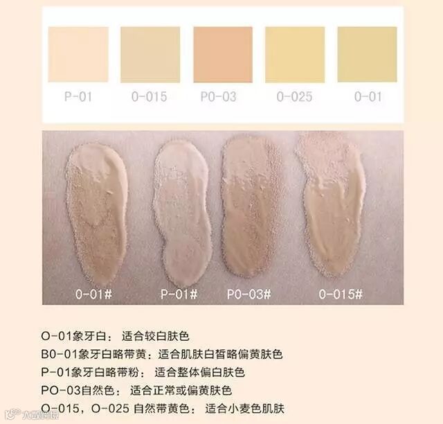 O-01,象牙白,比较适合较白肤色,着色度比较好,能适当遮盖皮肤的细纹。粉质挺清透的,很容易就可以把它涂抹均匀,不会出现浮粉的现象,光泽度也非常好,提高了肤色的光感和亮泽度,减少了暗沉。总体来说,很适合日常上班的妆容。每次用量只需一粒黄豆大小,一整瓶可以用很久。还有SPF15的防晒值,为日常防晒多一道防护屏障。