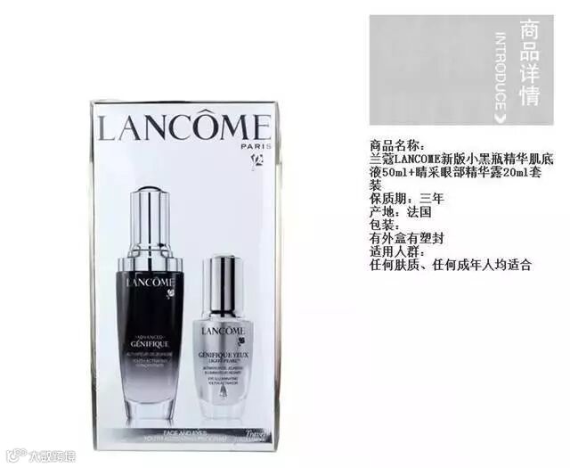 套装中的眼部精华是针对眼袋、黑眼圈、鱼尾纹专门设计的。只需一周时间,肌肤变得更加水润,平滑。用了几次后就能明显感觉眼睛下面的缺水纹少了,晚上涂厚厚一层的去睡觉,让你第二天眼周嫩到不行。