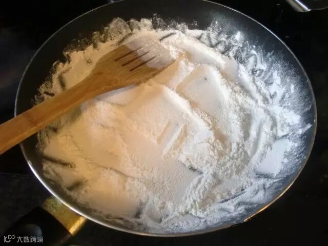 平底锅直接放糯米粉用小火慢慢炒至微黄即可
