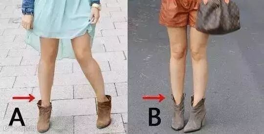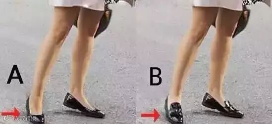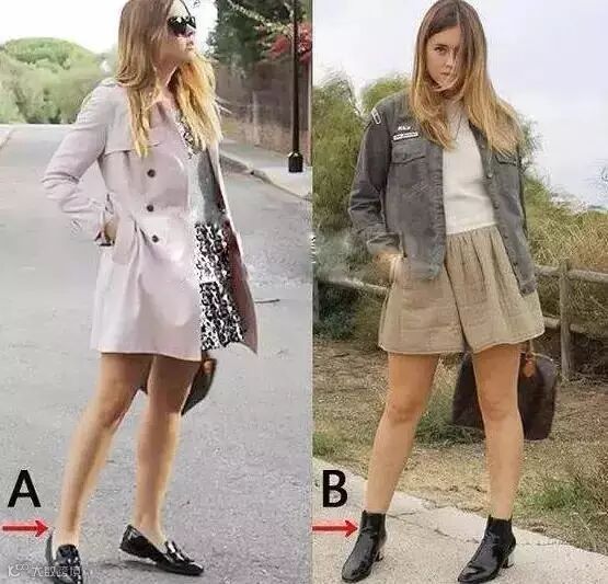 哈哈,还是上图的浅口鞋,A图是不是比B图更棒?鞋口越浅,腿部的延长线终点越远,视觉效果越显高。画风精巧的浅口鞋轻便不笨重,尖头圆头都显瘦。