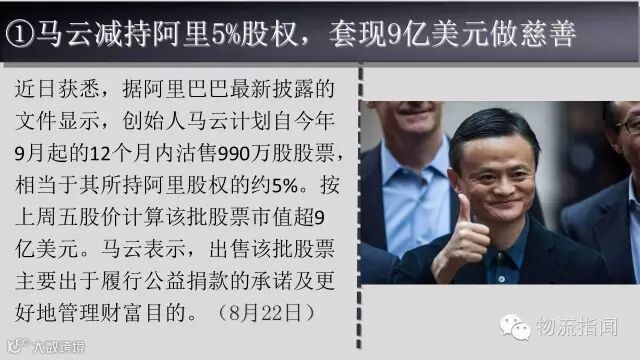 ➊马云减持阿里5%股权,套现9亿美元做慈善