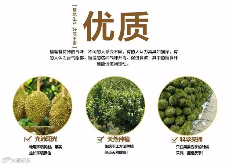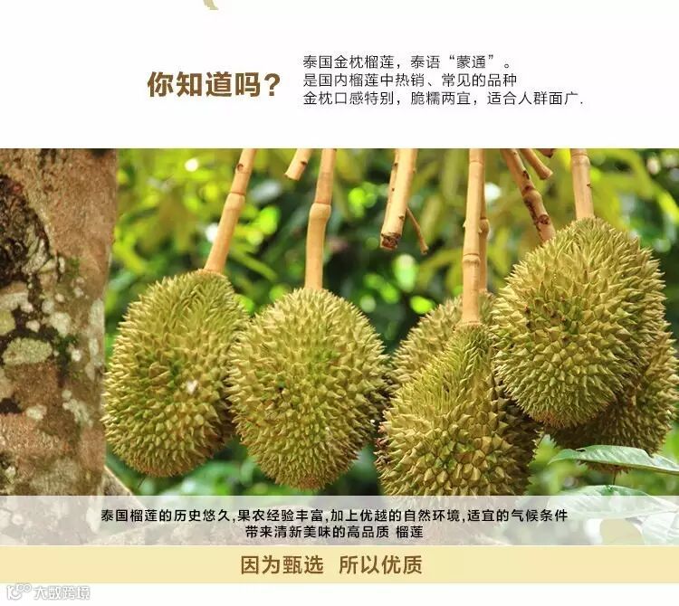 得益于这里的气候与土壤,泰国出产的金枕榴莲,品质极高。【一箱水果】商城的榴莲都是直接从泰国果园采摘,原产地直发,确保了榴莲的原汁原味。