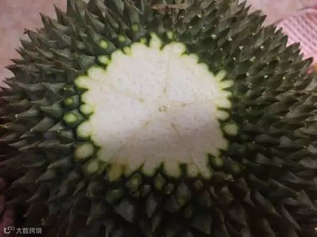 仔细观察榴莲顶端,会发现顶上有几条线。