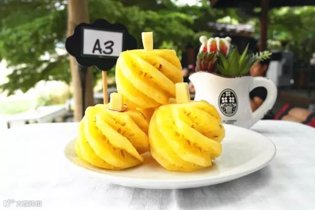 泰国小菠萝也叫“布兰”,只有清迈、清莱、普吉三地才有。小菠萝个头只有拳头大小,是世界上最小的菠萝。