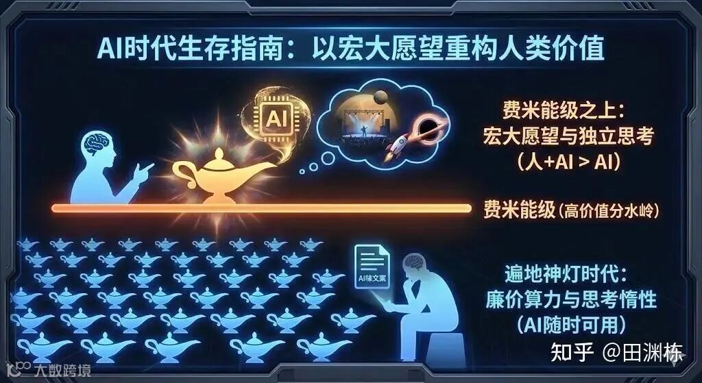 然而,顶尖的AI科学家田渊栋的思考,给我们敲了一记警钟。他认为,我们正快速进入一个 “遍地神灯”的时代:获取一个强大的AI助手将像捡到一个阿拉丁神灯一样容易。但问题来了,当神灯(AI)无处不在、有求必应时,我们人类自己是否还有独特的“愿望”?