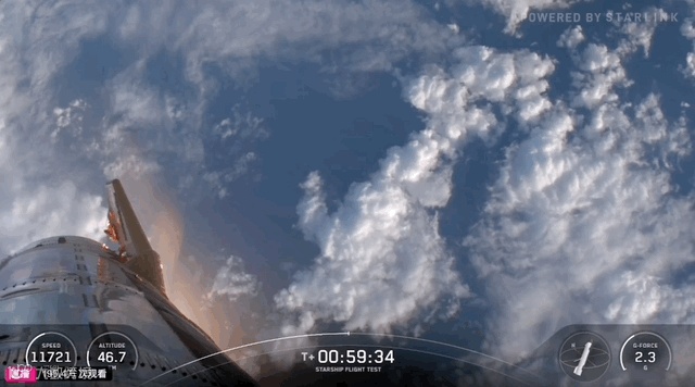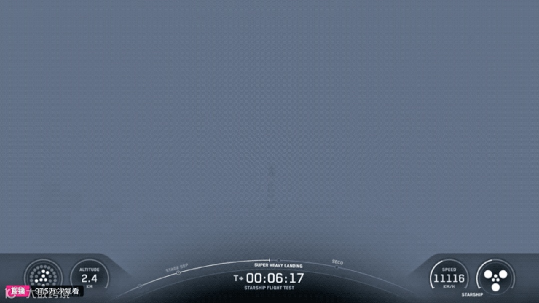 画面展示了助推器喷火的画面,此时助推器的高度为2400米。