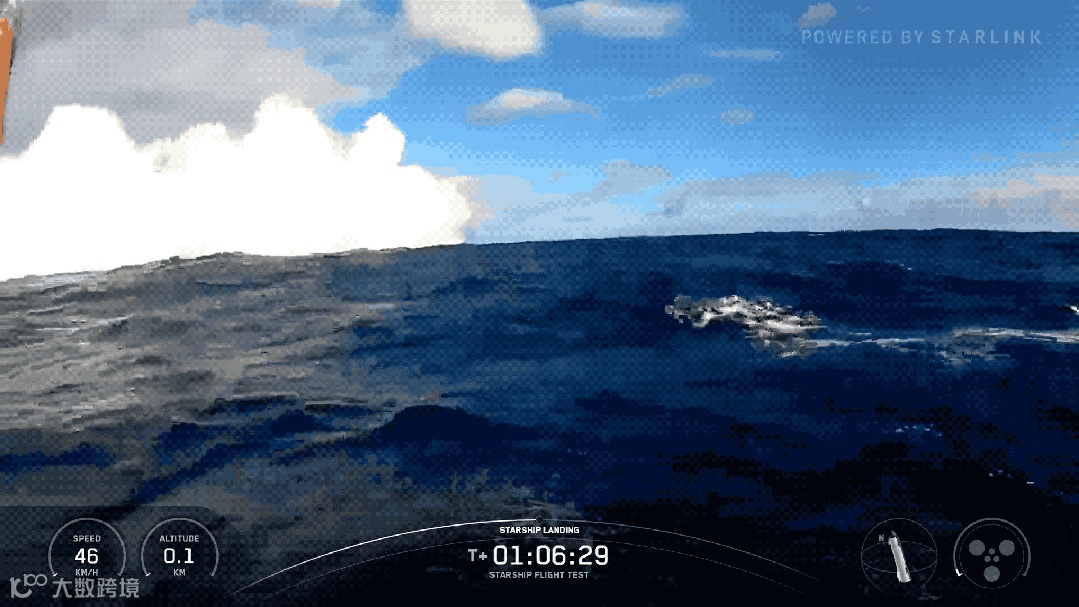 海面开始出现被助推器尾气掀起的水花,成功落入墨西哥湾预定海域。