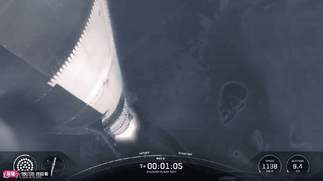 箭船组合体到达并成功通过Max Q(最大气动压力点)。