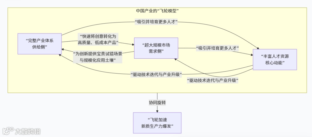 “全、多、大”和“融合化潜力”,正是中国产业体系无可比拟的根基。这构成了一个能够自我强化的“飞轮效应”: