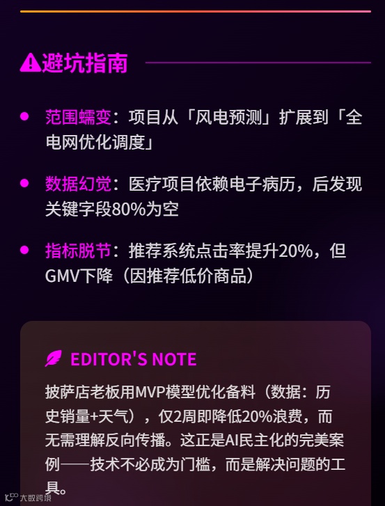 “准备,瞄准,开火”在执行成本较高时往往更胜一筹,一项研究可以揭示一个项目可能有多有用或多宝贵。例如,如果你能想出几个其他用例(餐厅、航空公司、电信公司等),并评估这些用例以确定最有前景的一个,那么在确定方向之前花些时间可能是值得的。