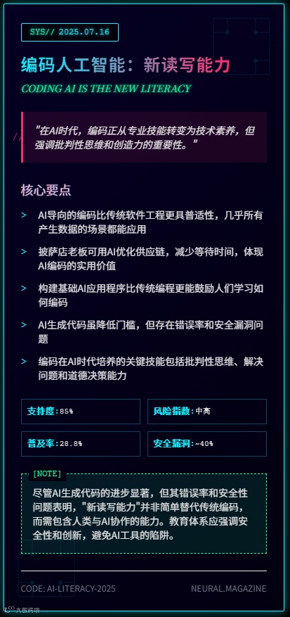 我希望构建基本人工智能应用程序的承诺,甚至比构建基本传统软件的承诺更能鼓励人们学习如何编码。如果社会接受这种新的读写能力,我们将从中受益。