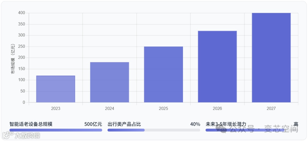 智能出行辅助设备,如智能拐杖、具有导航和紧急呼叫功能的手环等,具有广阔的市场前景。