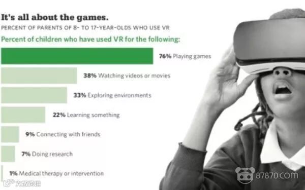 CSM与斯坦福大学虚拟人类互动实验室负责人Jeremy Bailenson合作发布了一份报告,其中包括一些学术研究和最近一次全国调查的结果。这份调查对12,000名成年人进行了抽样调查,其中包括3,600多名父母(他们都至少有一个18岁以下的孩子)和470名年龄段在8至17岁的孩子(这些孩子都在使用VR设备)。