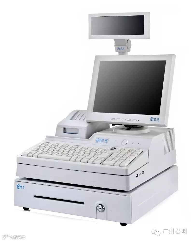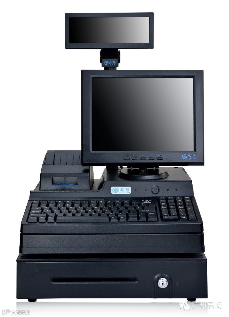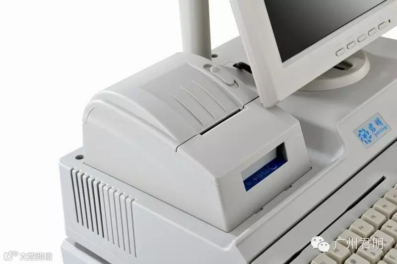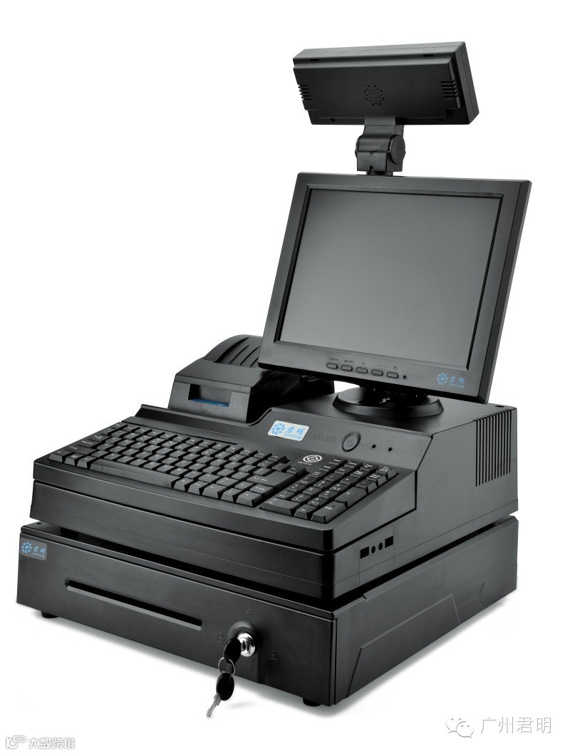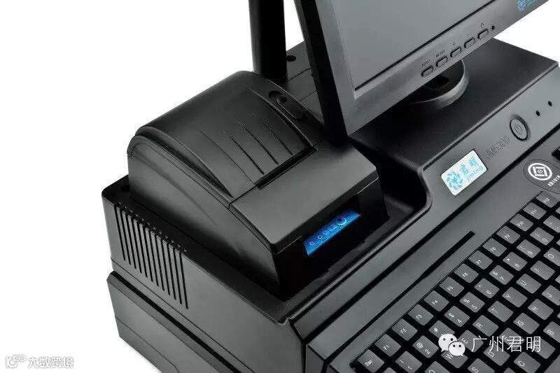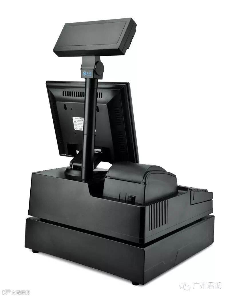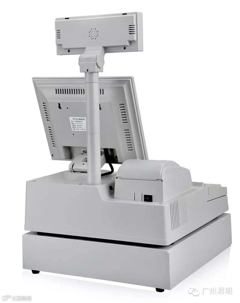 嵌入式50mm小票打印机,一体化后注塑挡板,小票打印机和液晶显示器集中供电,顾客显示屏直连COM2,外露只需一根电源线。