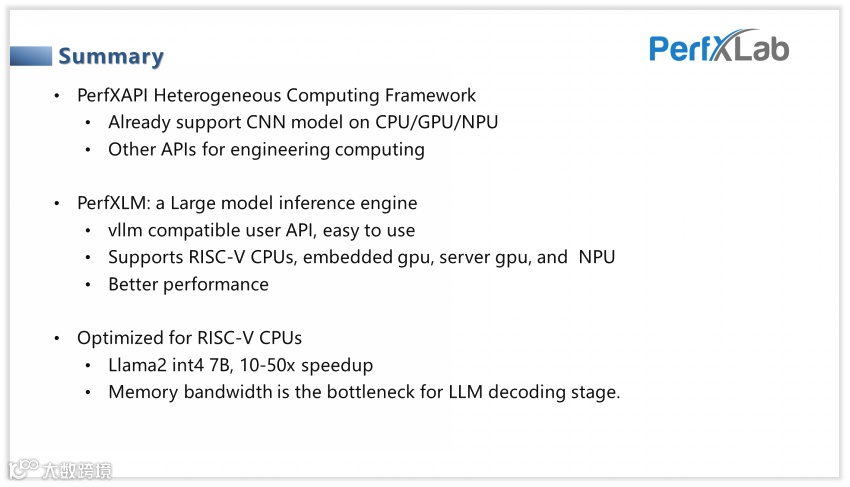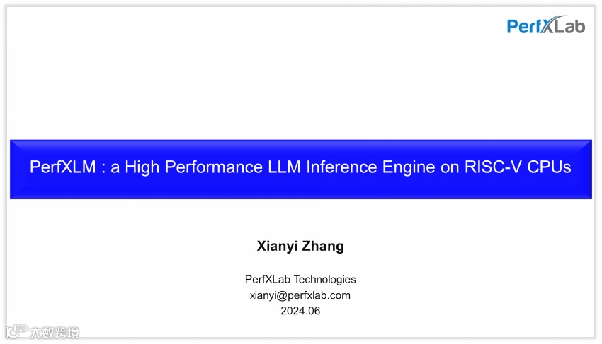 澎峰科技CEO张先轶博士在RISC-V欧洲峰会上发表演讲:“PerfXLM : a High Performance LLM Inference Engine on RISC-V CPUs”。