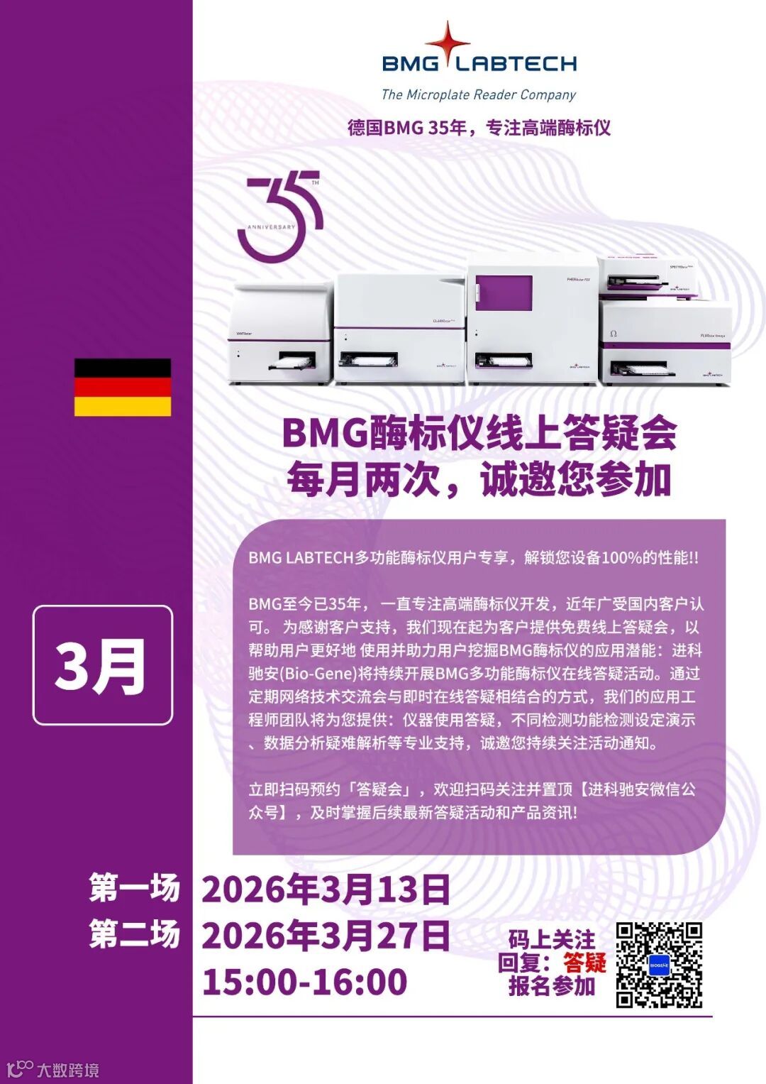 >>【3月21日】第二场BMG多功能酶标仪答疑会!欢迎报名参加!