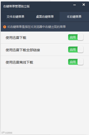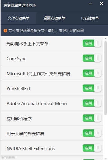 :打开软件就能看到所有右键菜单选项,无需翻找隐藏设置,管理选项清晰明了。 - 支持个性化定制