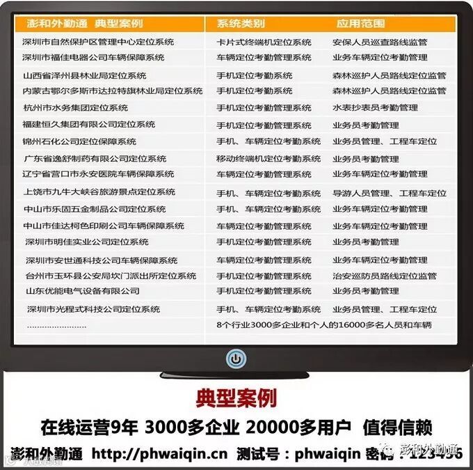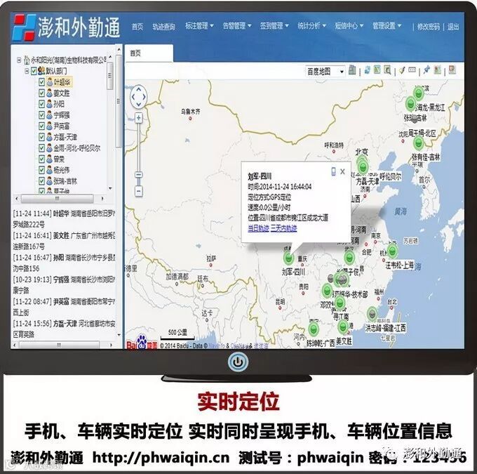 澎和外勤通是一种运用于安卓智能手机、苹果智能手机、车载GPS、移动GPS等设备上的软件,提供实时定位、活动轨迹、电子围栏、安全保障、考勤管理等服务。