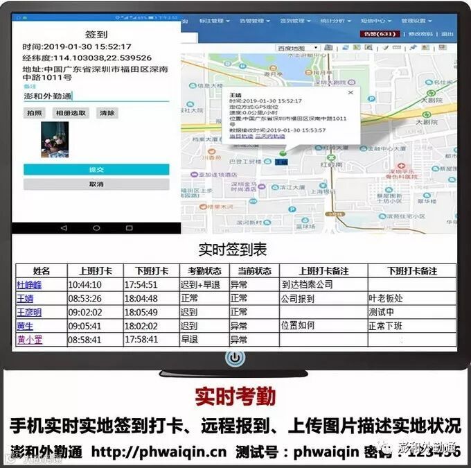远程考勤:记录手机的开关机及车辆的启动情况,了解人员车辆的工作状态。