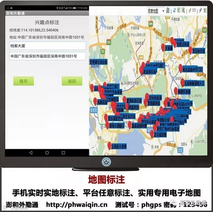 手机标注:可随时直接用手机在现场标注地点,实时直接在平台地图上显示。