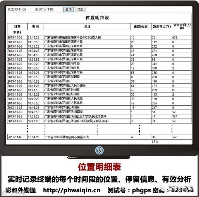 位置明细:记录手机或车辆等终端机在具体时间的位置、地址、停留情况等信息数据。