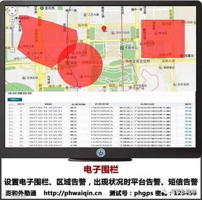 电子围栏:可以设定各种形状的电子围栏,可以设置手机、车辆等终端机多种围栏告警形式。