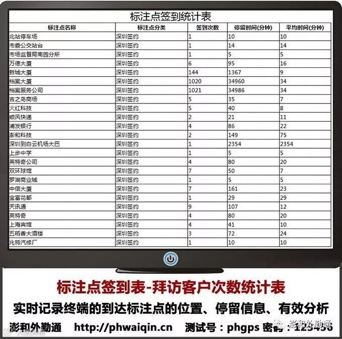 标注签到:自动生成标注点签到报表、对手机或车辆等终端机在关注位置点的签到数量。