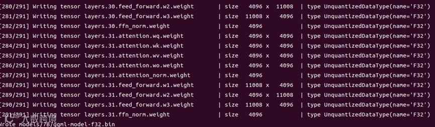 python3 convert-pth-to-ggml.py models/7B/ 0