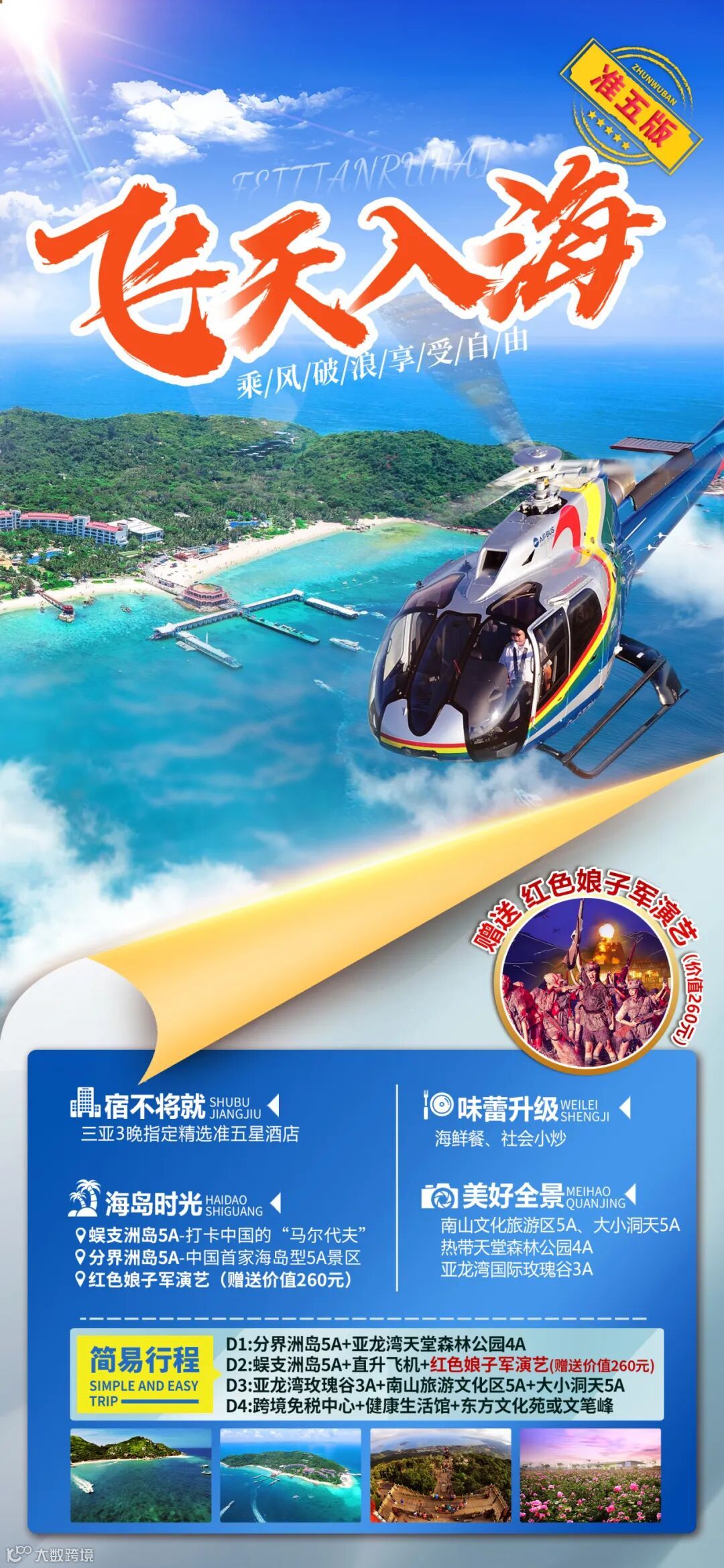 蜈支洲岛—直升机体验-红色娘子军演艺