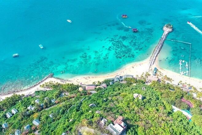 【蜈支洲岛 - 5A景区】:三面漫山叠翠,2700多种原生植物郁郁葱葱,四周海域清澈透明,海水能见度6-27米,是闻名的潜水基地。岛上景点极具浪漫风情,有情人桥、观浪亭、观海长廊、“HAPPY LOVE”标志等。这里是冯小刚电影《私人订制》的拍摄地,面向大海一排浪漫的白色观景座椅现在已是蜈支洲最热门的景点之一;