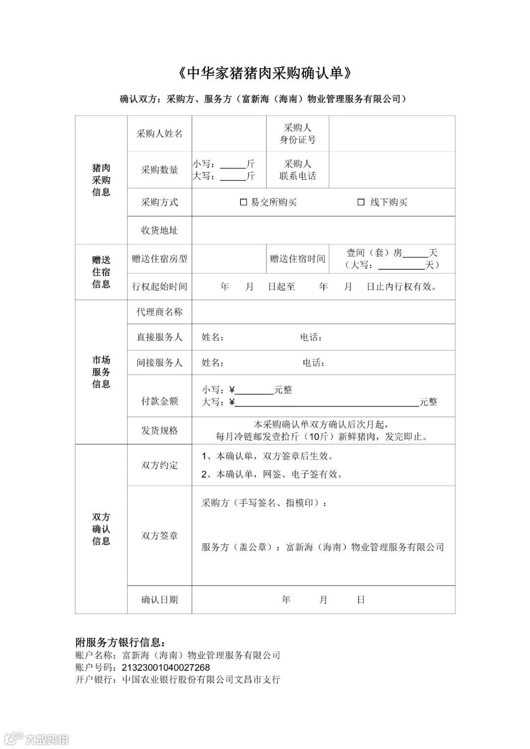《中华家猪生态猪肉采购确认单》,里面有必填项: