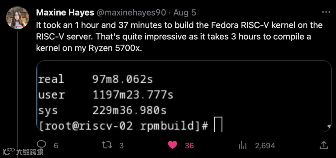 注释:编译Fedora,HS-2 64核RISC-V服务器比Ryzen5700x快两倍!