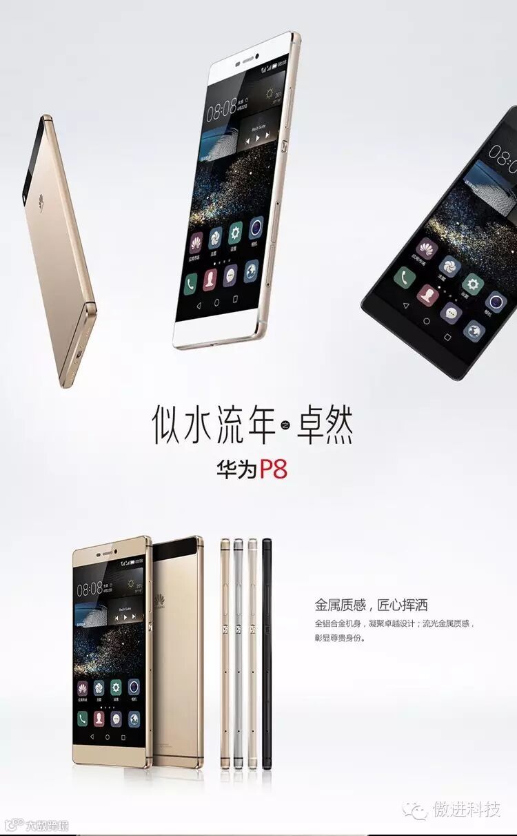 华为 HUAWEI P8 双卡双待 移动/联通双4G高配版 64GB存储(流光金)同步上市