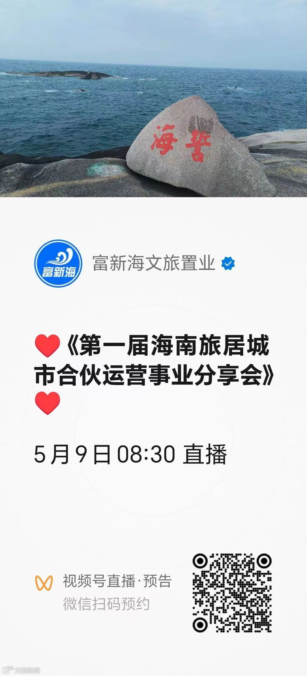 2024年5月9日(后天)《第一届海南旅居城市合伙运营事业分享会》和《首届中华家猪生态猪肉品鉴会》将如期举行(上午8:30分正式开始),界时微信视频号全程直播,敬请关注。