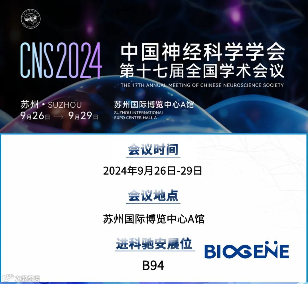2024年9月26日-29日,由中国神经科学学会主办的“中国神经科学学会第十七届全国学术会议”将在苏州国际博览中心举行。本次会议是神经科学领域最大的综合性学术会议,已经连续成功召开了16届,受到广大会员的支持和欢迎。会议邀请了著名专家、院士以及各领域顶尖的学者进行大会报告,将有来自各学术科研机构、高等院校及企、事业单位的专家、学者代表参会。进科驰安邀您共赴盛会!