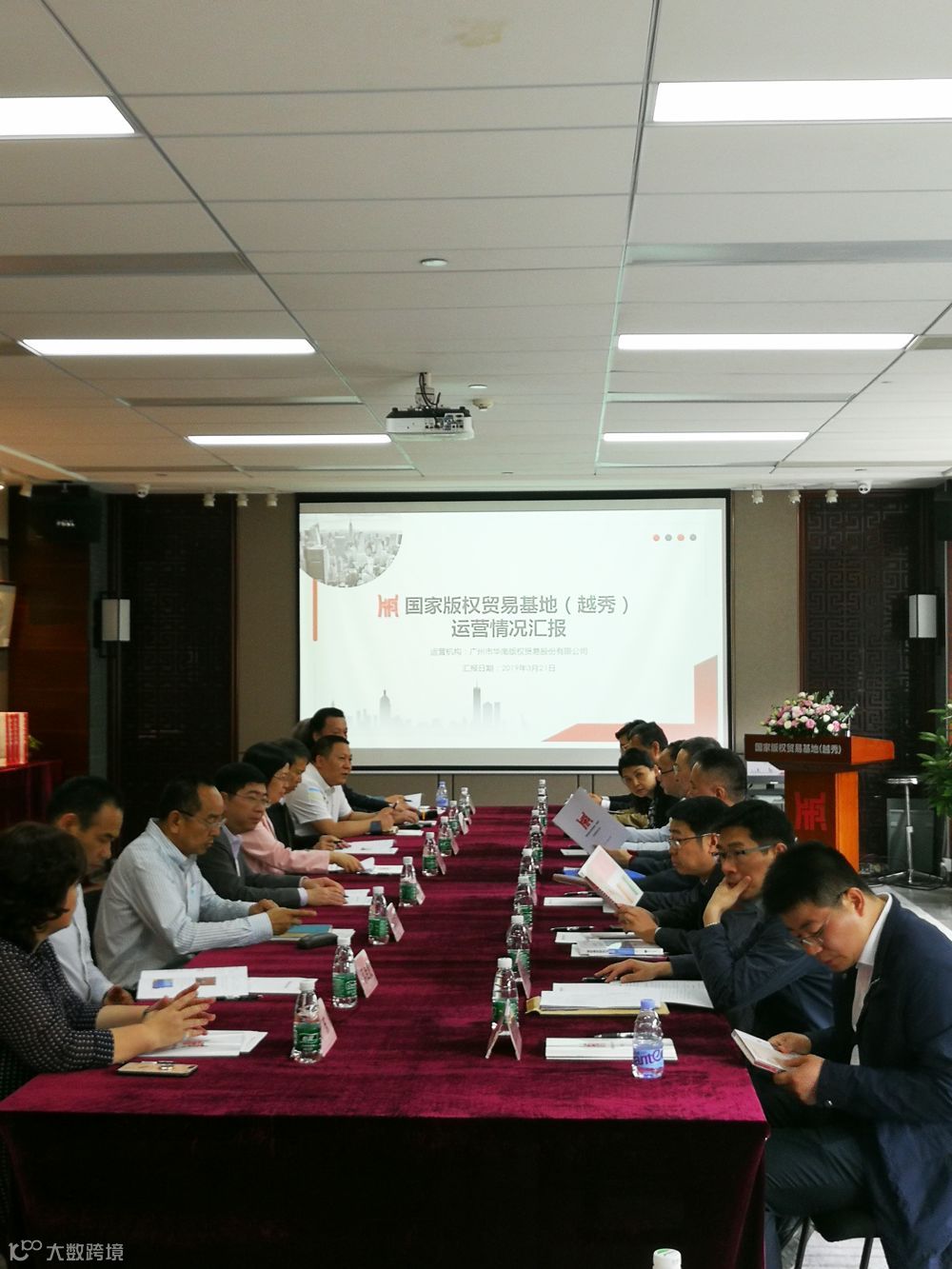 2019 年 3 月 21 日下午,中宣部版权管理局局长于慈珂、中宣部版权管理局办公室主任张有立、中宣部版权管理局执法监管处处长赵杰、中宣部版权管理局社会服务处调研员许炜和海南省委宣传部版权处、广西壮族自治区党委宣传部版权管理处等领导及相关负责人莅临国家版权贸易基地(越秀)考察调研,广东省委宣传部副部长王桂科和南方文化产权交易所总经理雷震一行陪同接待,开展了座谈交流会。