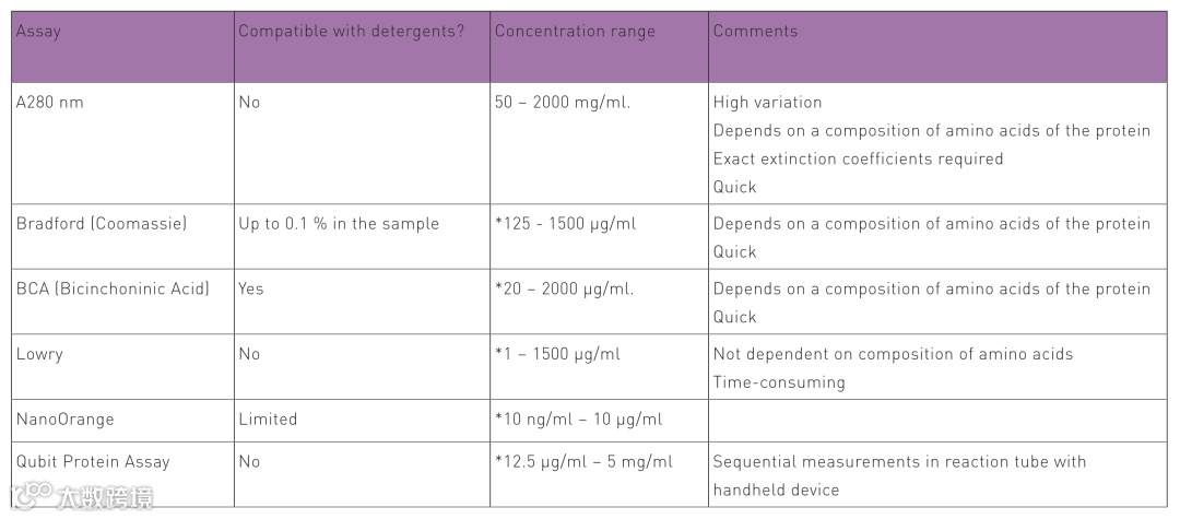 我们对这几种蛋白质测定方法进行比较,在下表中列出了各自的优缺点。