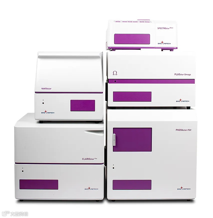 图5:BMG LABTECH酶标仪:从上到下依次为单功能酶标仪SPECTROstar Nano、多功能酶标仪VANTAstar、FLUOStar Omega、CLARIOstar Plus和PHERAstar FSX。