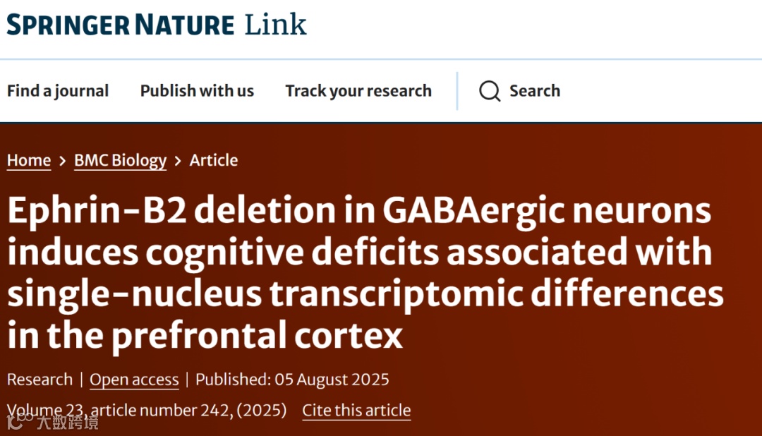 近日,上海交通大学、上海中医药大学等联合团队在《BMC Biology》发表重要研究成果,揭示了 Ephrin-B2(EB2)缺失与认知缺陷的关联机制,为神经精神疾病研究提供新方向。