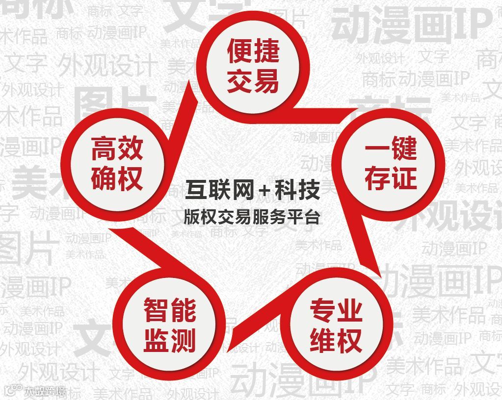 版圈作为文字、音乐、图片、动漫画IP等全覆盖的综合性互联网线上版权交易平台,通过侵权监测挖掘版权价值,以版权维权促进版权交易,培养用户版权付费习惯,构建线上版权良性生态发展圈,助力版权行业的健康良性发展。