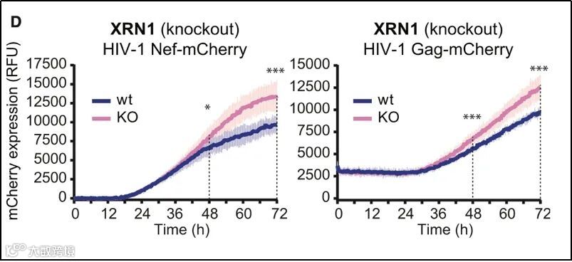该研究同时采用一种实时监测病毒复制感染能力的新方案:利用传统构建假病毒的方案,在病毒基因组中插入荧光蛋白;构建好的假病毒感染细胞后,通过24-72小时长时间实时监测细胞内荧光信号(图2和图3),分析不同RBPs蛋白表达干预,不同药物处理条件对病毒复制感染能力的影响。此项重大研究成果,为揭示RNA结合蛋白在RNA病毒感染过程中所扮演的重要角色,加速RNA病毒如艾滋病毒,新型冠状病毒等抗病毒药物新药研发提供了重要候选参考靶点。