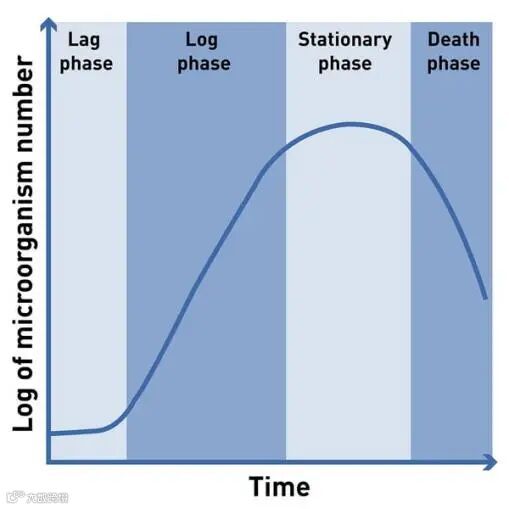 当微生物适应了新的环境,就会开始增殖。细胞数量在一段时间内以几何级数增加。对数期是微生物分裂最活跃的时期,可用于进一步计算倍增时间和生长速率等参数。