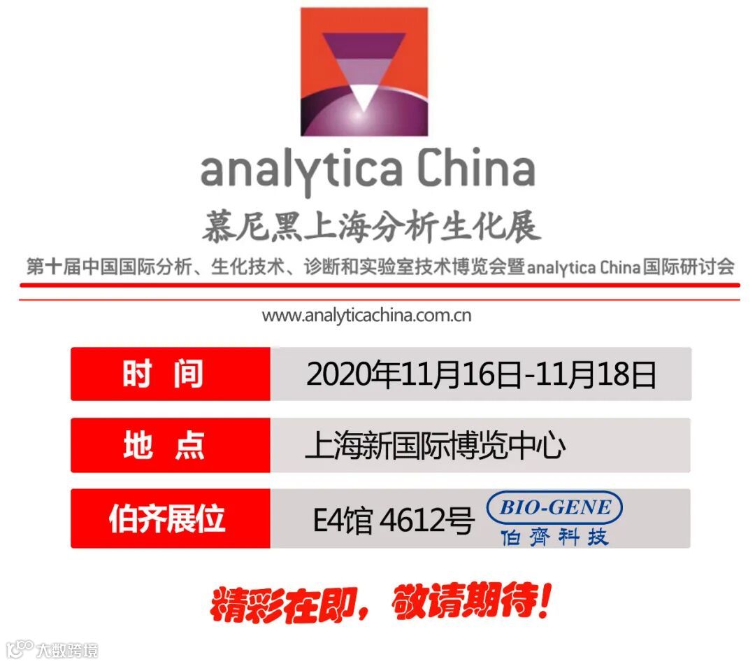 亚洲重量级分析、生化技术、诊断和实验室技术博览会——第十届慕尼黑上海分析生化展(analytica China) 将于2020年11月16至18日在上海新国际博览中心盛大开幕,伯齐科技邀您共赴盛会!