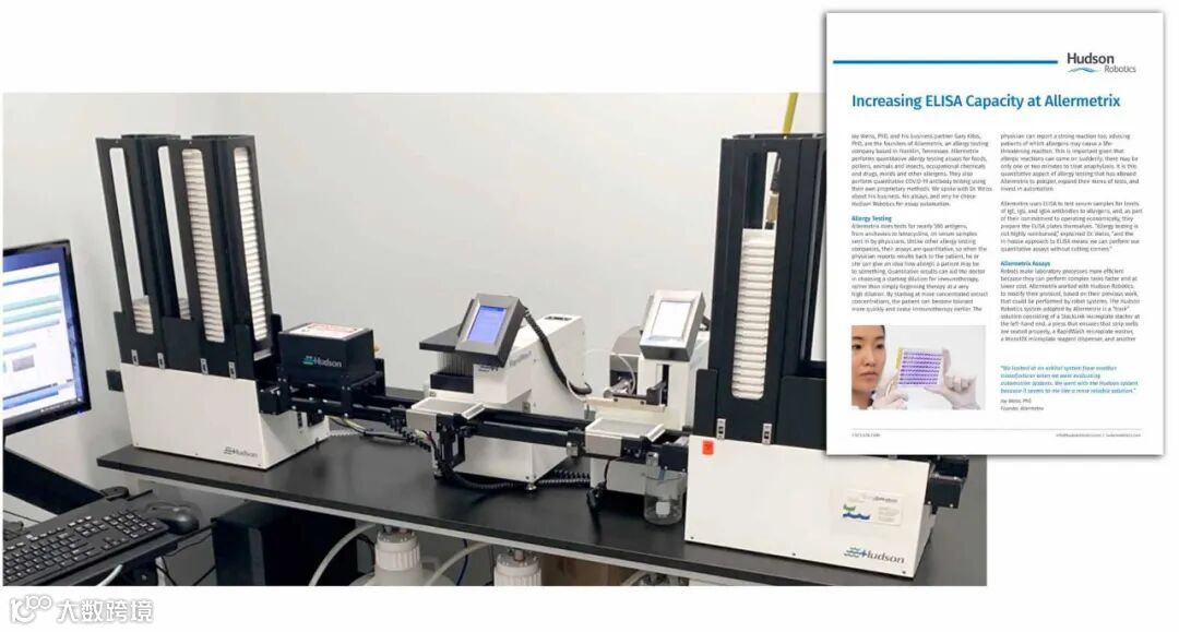 “在评估自动化系统时,我们查看了另一家制造商的轨道系统。我们之选择了Hudson Robotics,因为在我看来这是一个更可靠的解决方案。 ——Jay Weiss, PhD, Founder, Allermetrix”