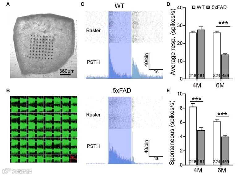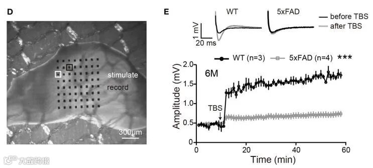 最近暨南大学和香港大学联合发表了早期阿尔茨海默症5xFAD小鼠模型大脑和视网膜异常的研究成果。研究团队采用了MED64离体微电极阵列记录系统和光刺激器联用记录离体视网膜单个神经节细胞对光的反应,发现来源于模型小鼠的视网膜对光反应活性降低。研究团队还采用MED64离体微电极阵列记录系统记录模型小鼠海马脑片LTP,发现来源于5xFAD模型小鼠的脑片不能诱导出明显的LTP,阐明视网膜退化过程的时间线和大脑相似,可以使用非侵入性方法测试视网膜结构和功能以反映大脑的变化,从而进行早期阿尔茨海默症诊断。