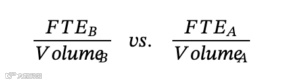 图 4. 比较采用实验室自动化之前(B)及之后(A)每单位数量所需的人员费用。