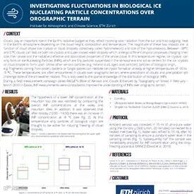 冰核粒子(INPs)对云中的冰的形成起着重要作用,它可以触发降水。大气气溶胶中含有INPs,在-38℃到0℃的温度下可以形成冰核。与其他气溶胶颗粒(如矿物粉尘、老化的烟尘颗粒)不同,生物源颗粒(如花粉、细菌或真菌孢子的碎片)可在-10至-5℃的高温下介导冰晶的形成。这些温度通常发生在地形地貌上方的云层中,故此云和降水的预测对最先进的天气模型仍然是个挑战,而对于生物源INPs的分布知之甚少也是一个原因。